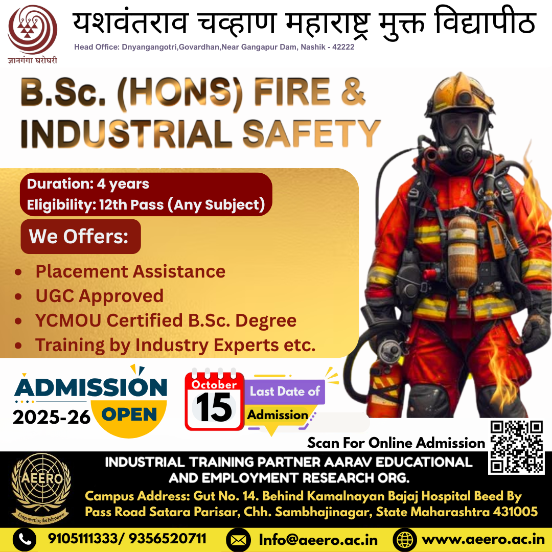 B.Sc in Fire Safety Course, Industrial Safety, Occupational Safety, Food Safety, Health Safety, and Environment. M.Sc in Fire Safety, Industrial Safety, Occupational Safety, Food Safety, Health Safety, and Environment. MBA in Safety Management B.Tech & M.Tech in Fire/industrial technology & Safety Engineering